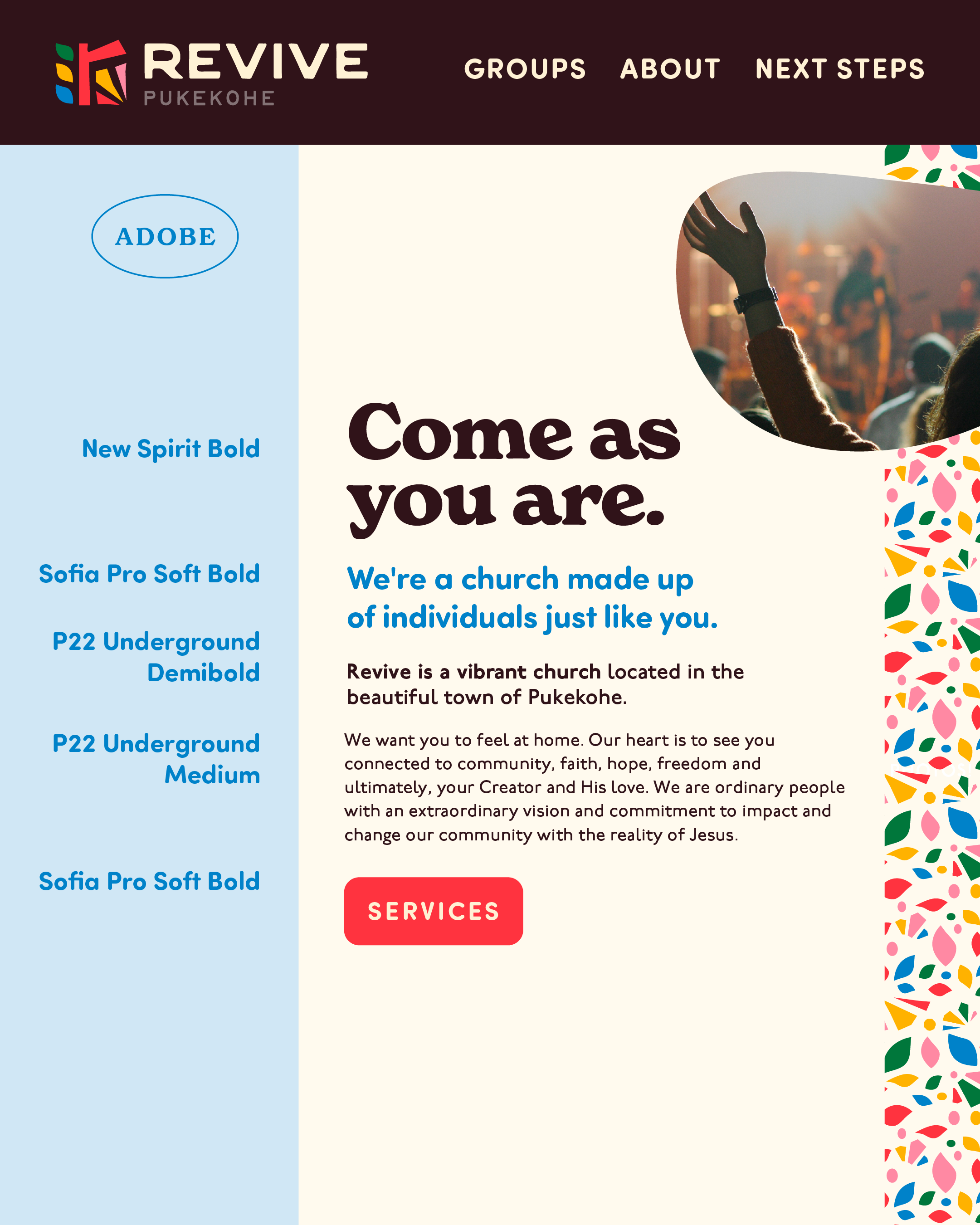 Ever had someone from New Zealand slide into your DMs? That’s exactly how we got connected to Revive Pukekohe (pronounced: poo-keh-KOH-heh) from Auckland, New Zealand. Maybe you’re immediately thinking of Lord of the Rings with dramatic, larger-than-life soundtracks of Middle-earth magic. Lucky for us, this international church client was a very real and vibrant church looking to tell a story of their own through clear branding. To know them is to love them and we were honored to hang all the way across the ocean. It’s always an added layer of fun when we get to serve a client from across the globe. This group helped us remember some key takeaways when working through international brand strategies.