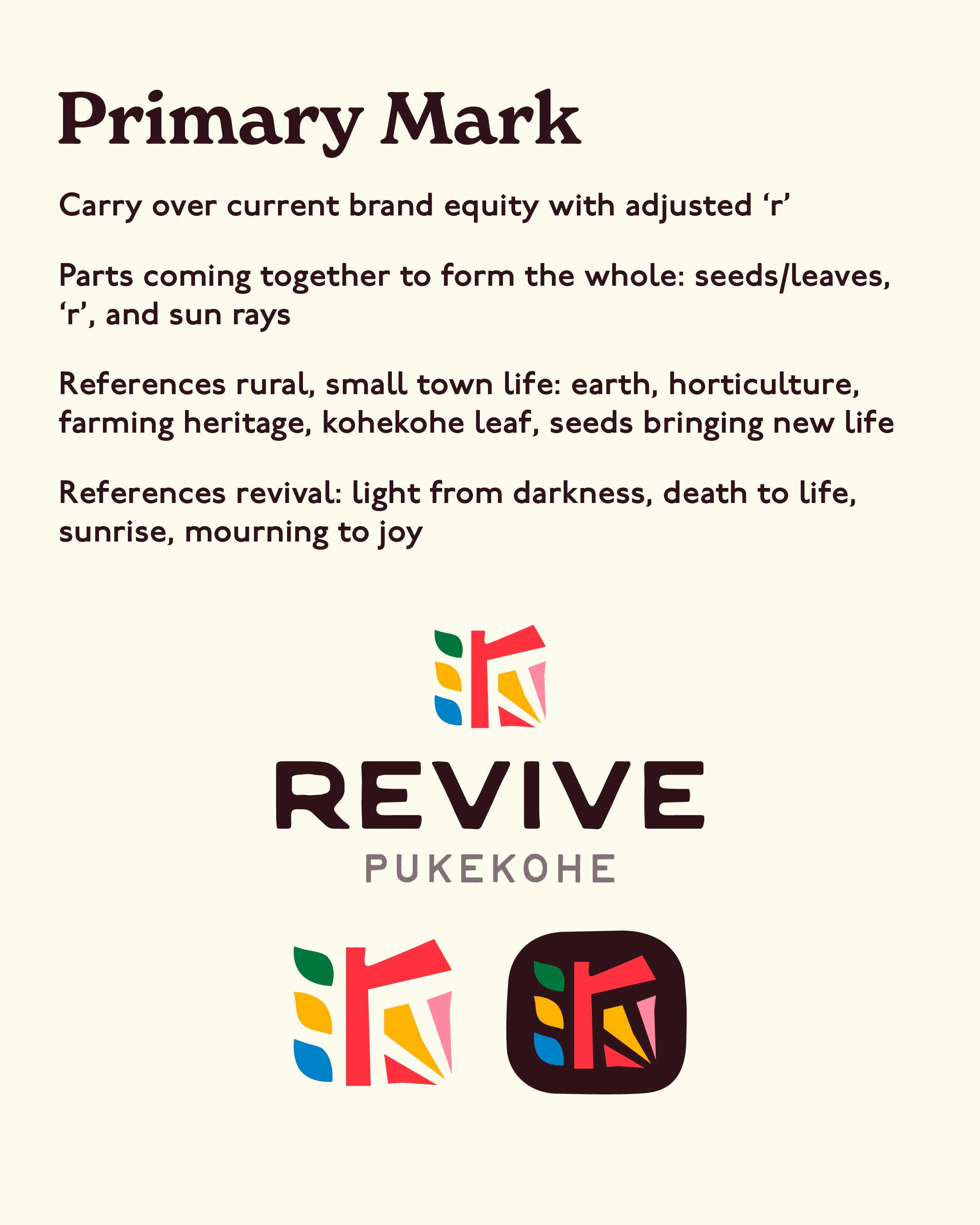 The Revive team described themselves as the “Swiss Army knife of churches” and so the logo needed to fit that multipurpose vibe. We landed on a colorful, earthy and full of love logo design. It’s got the offshoots of seeds and growth on the left and this sunrise sketch on the right to symbolize new life and fresh beginnings.