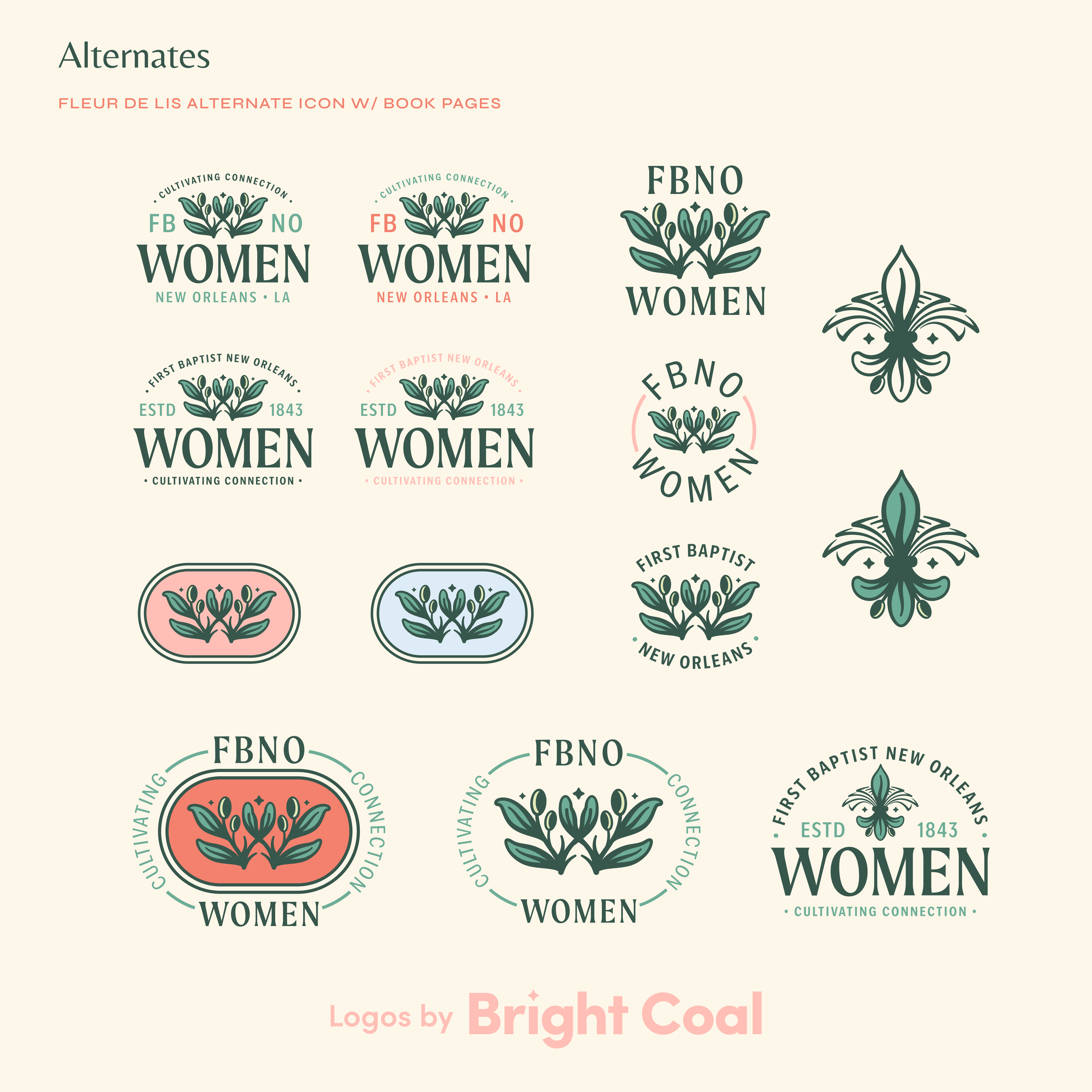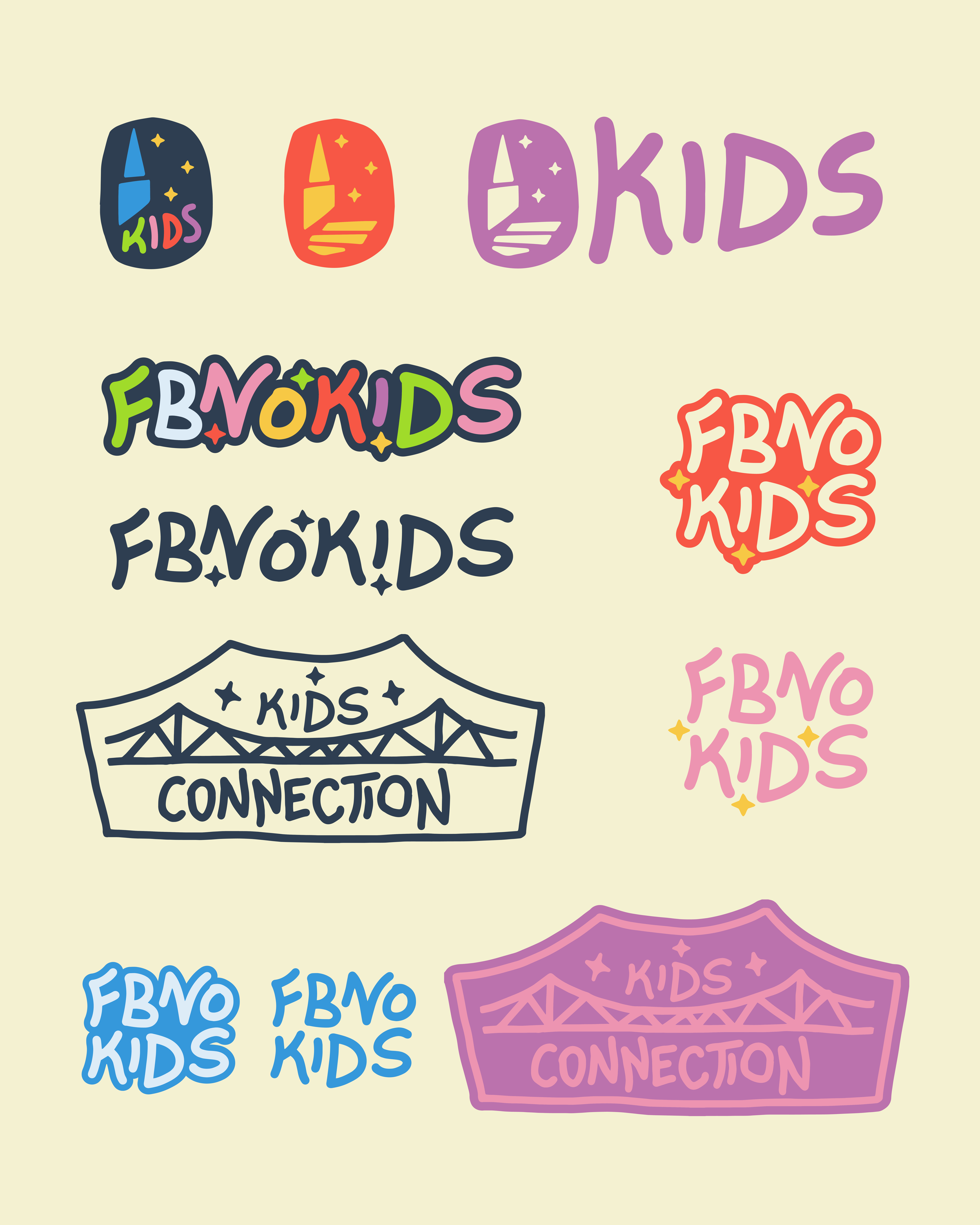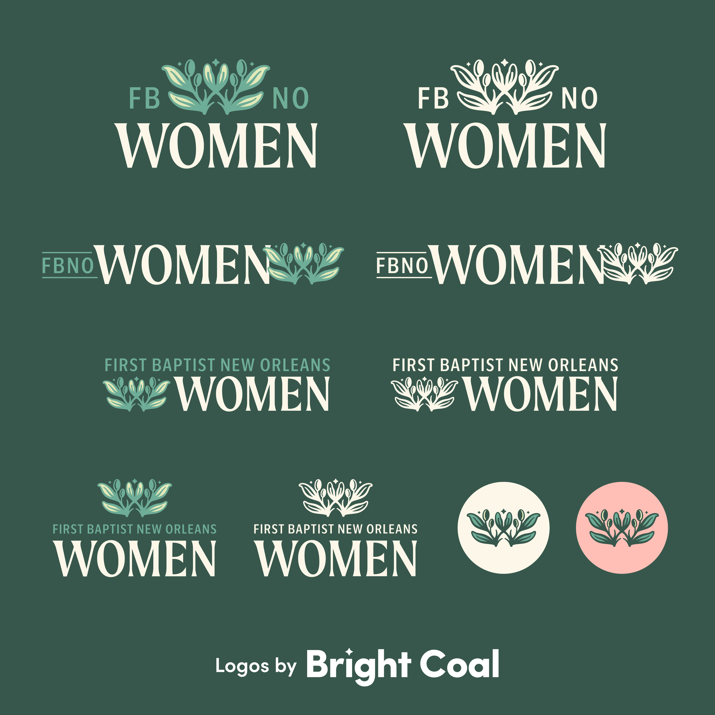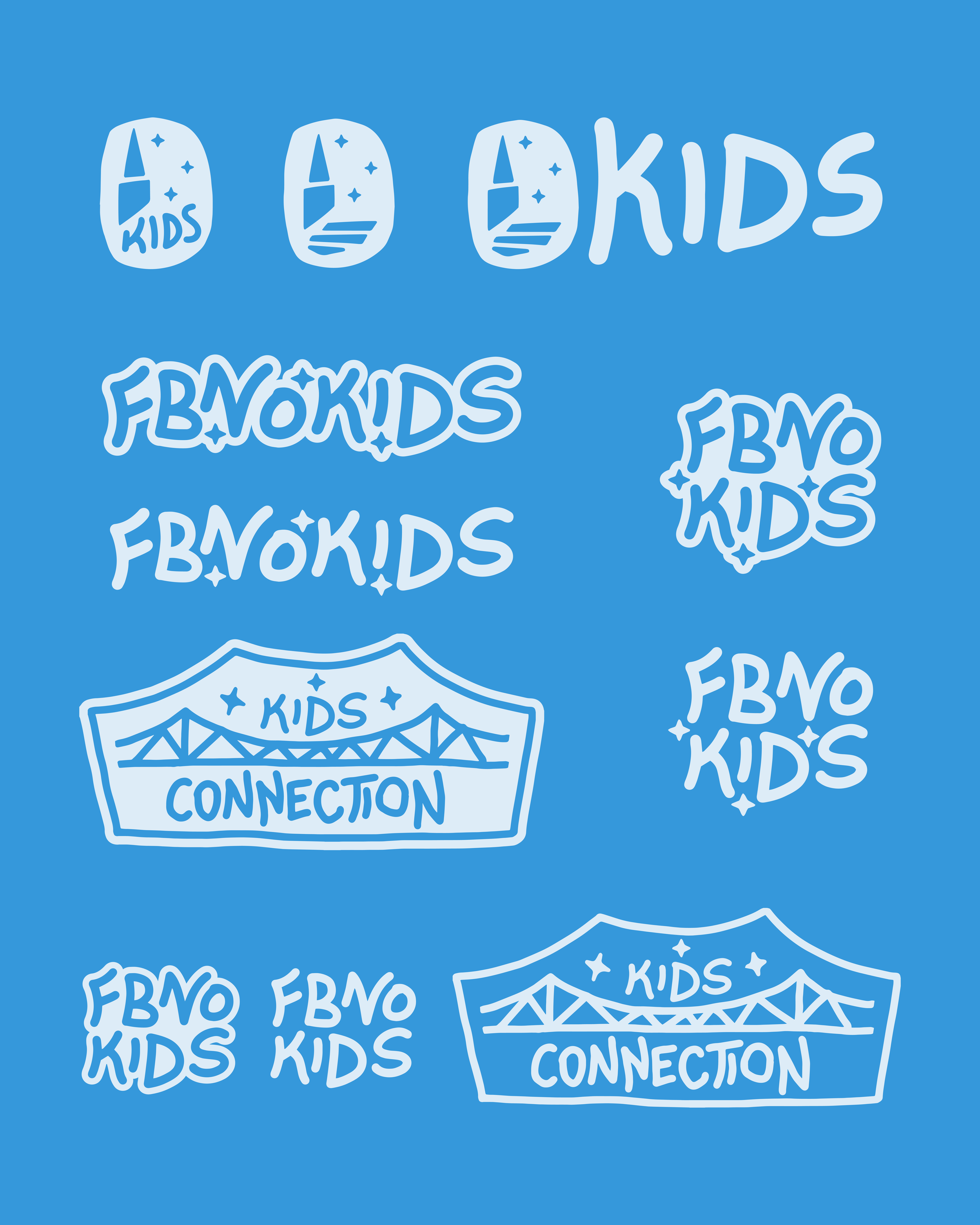 For FBNO, the main church logo functions as the parent of the family. This logo design anchors the rest and sets the tone of the overall core values. It also opens the door for the sub-ministries to function more like siblings inside the house. The children’s logo and the women’s ministry logo can each have their own personality and style, but guests can tell they’re related to one another.