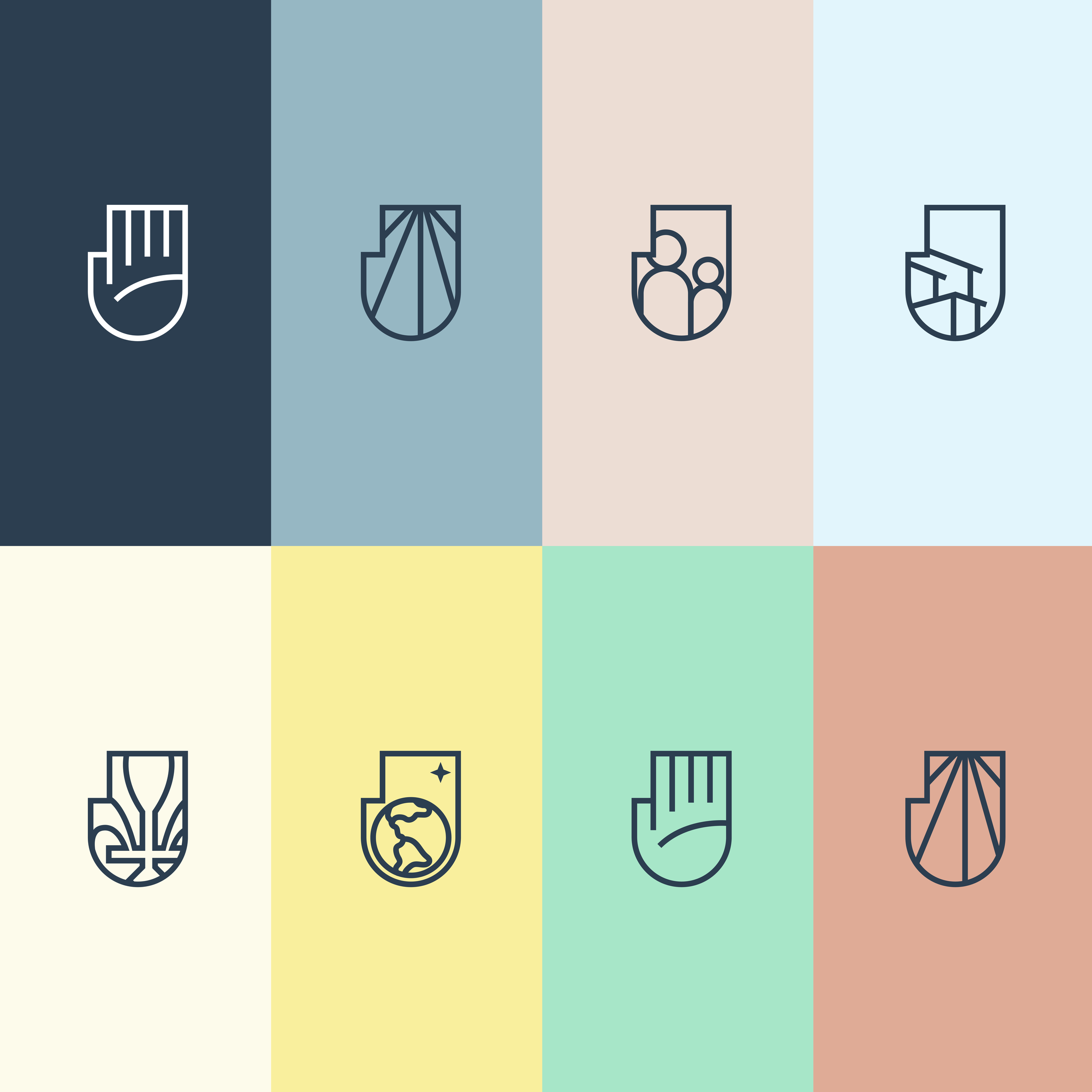 Complimentary color schemes and shared icons keep these ministries within arms length of the parent logo while still giving every group a chance to shine. What’s playful and bright in the children’s ministry logo becomes warm and encouraging in the women’s ministry logo. The extended family members of missions outreach and church-wide prayer campaigns are other initiatives that connect to the overall church brand.